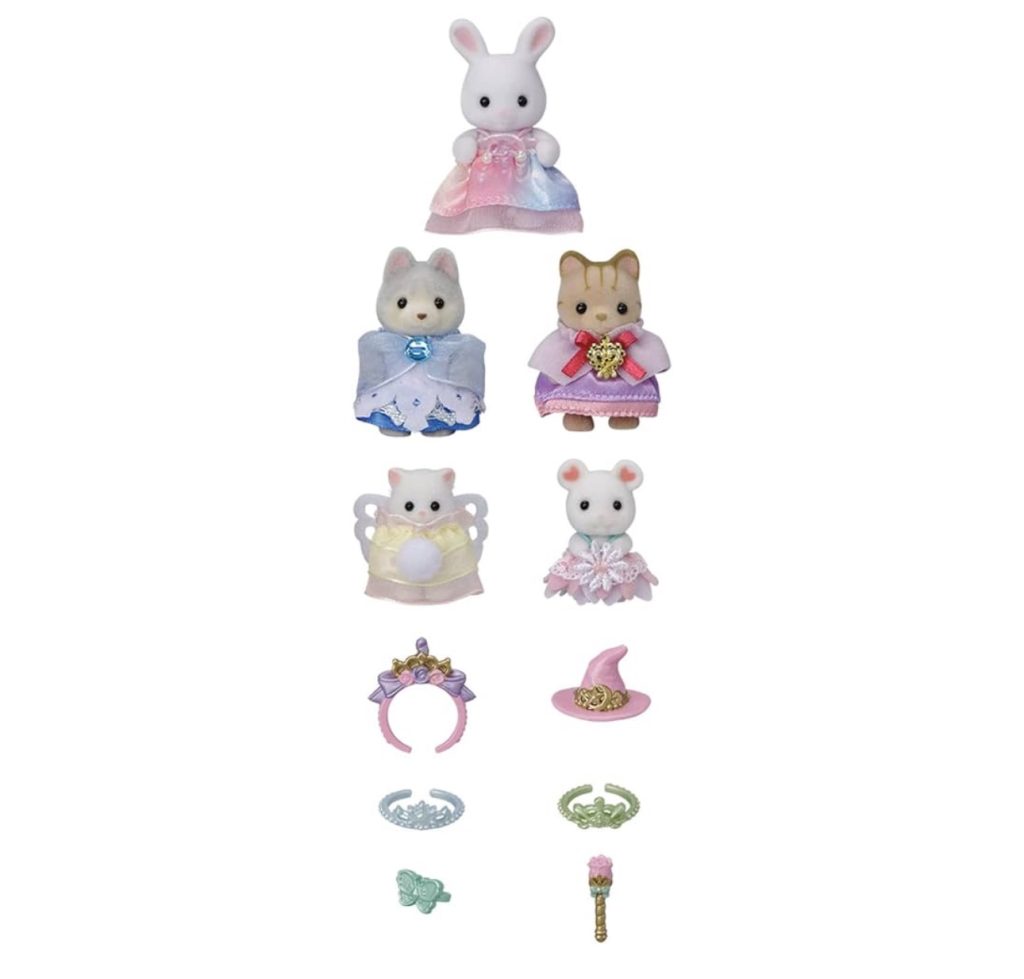 • El juego incluye disfraz de princesa de unicornio de conejo de chocolate, disfraz de princesa Husky bebé Linnea en hielo, gato bebé albaricoque en disfraz de princesa mágica, malvavisco ratón bebé Mary en disfraz de princesa de cuento de hadas y gato persa bebé Bonnie en disfraz de princesa mariposa